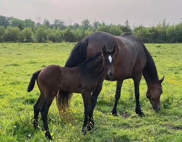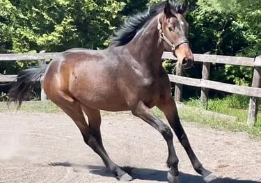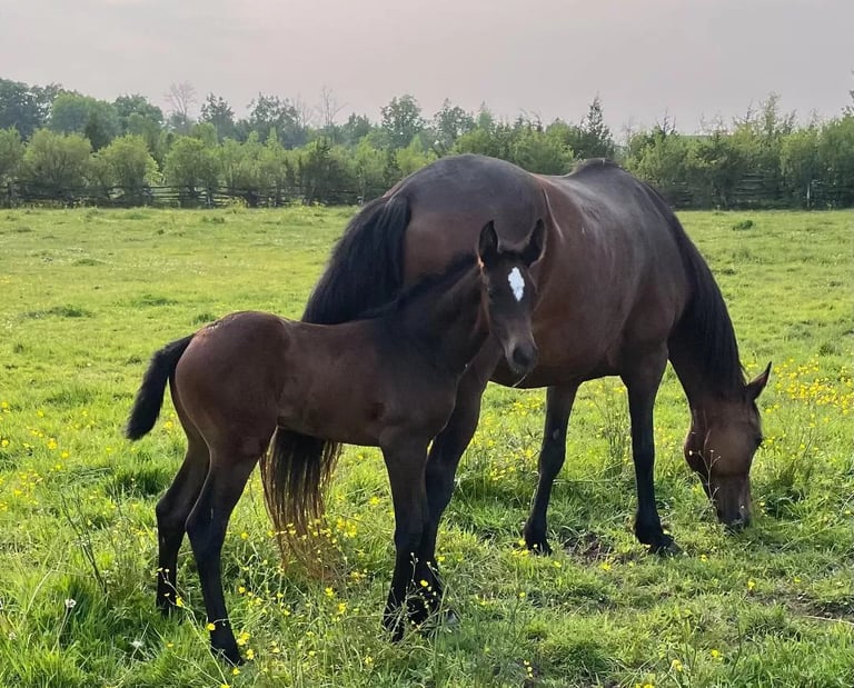 Riona's Cruise is a 2021 Irish Draught Sport Horse filly by Derryinver Luxury Cruise out of a 15.2hh Thoroughbred mare - Shopping Queen, by Buddha (Unbridled Song), out of Scatter Buy.