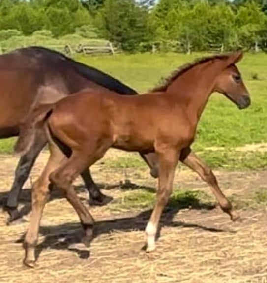 Silver Nova is a 2023 Irish Draught Sport Horse filly by Derryinver Luxury Cruise, out of 16.1hh Irish Draught Sport Horse mare Linwood (Lindy). Lindy is by Likoto out of Laughton Silver.